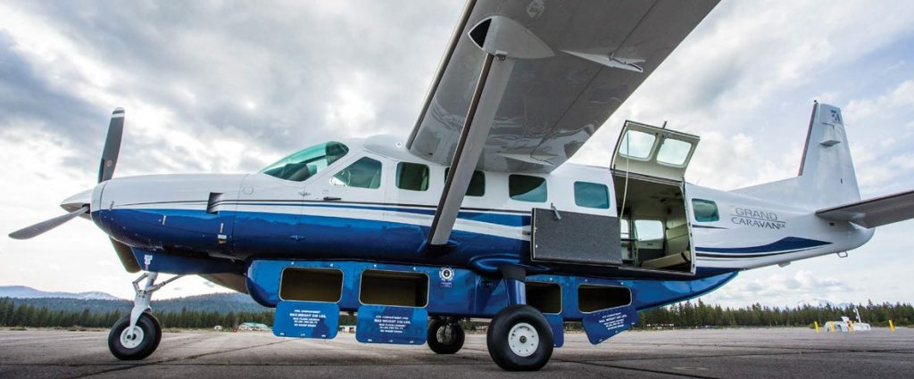 Our Cessna Caravan turboprop really versatile and partly or completely modifiable for freight use. Smaller loads can be picked up by removing the rear seats of the plane, leaving room for 2-6 people in the front of the plane.